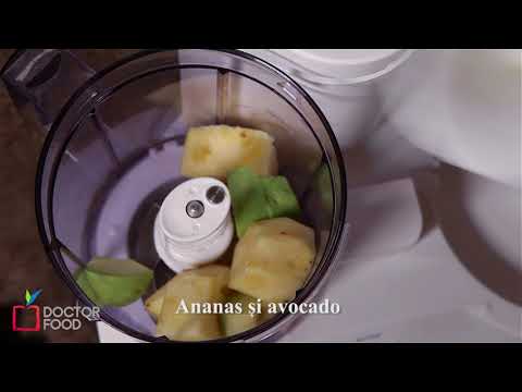 Se adaugă în blender ananasul, avocado, sucul de lime, semințele de cânepă, ghimbirul, pătrunjelul, laptele de cocos și se prepară un smoothie. Se servește cu caise deshidratate și biscuiți cu ghimbir și cocos.
